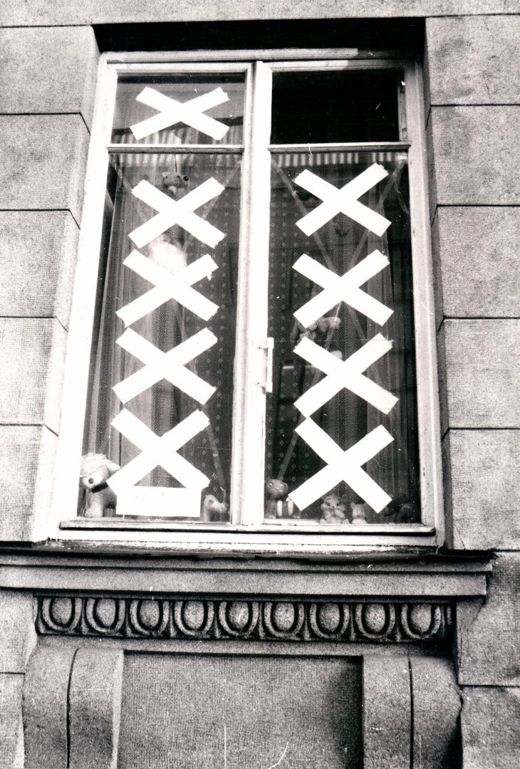 I ask my mother why. She says it’s to stop the glass from shattering in case of explosions.