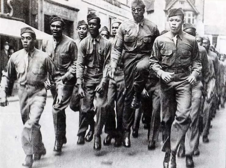 Mezi roky 1942 a 45 v Británii působily skoro 2 miliony afroamerických vojáků (10 % amerických jednotek ve VB). I kvůli segregačním zákonům, které bohužel platily i v armádě, sloužili černoši především v nebojových, technických jednotkách. Veleli jim běloši.