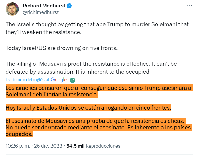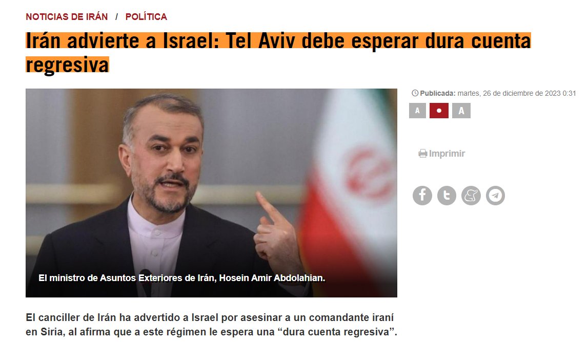 Lo insólito es que luego de que el régimen israelí fuera quien asesinara al militar para provocar a Irán, los medios hicieron una extraña pirueta para decirnos que el que amenaza es Irán.