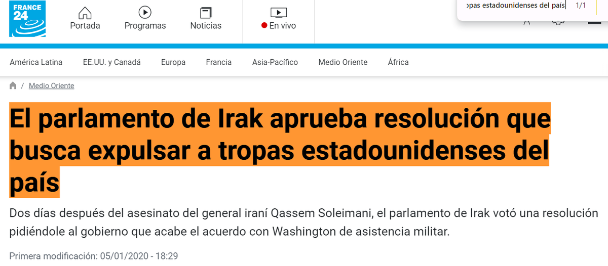 Dos días después del 3 de enero de 2020, con la orden de Trump de asesinar al general Qasem Soleimani, el Parlamento de Irak (para los amantes de la democracia) tomó medidas: