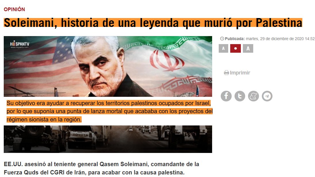 Por cierto, Soleimani no solo luchó contra ese terrorismo del que se vieron beneficiados ciertos poderes para Fragmentar países en Medio Oriente, sino que también fue una figura clave en la defensa del pueblo palestino.