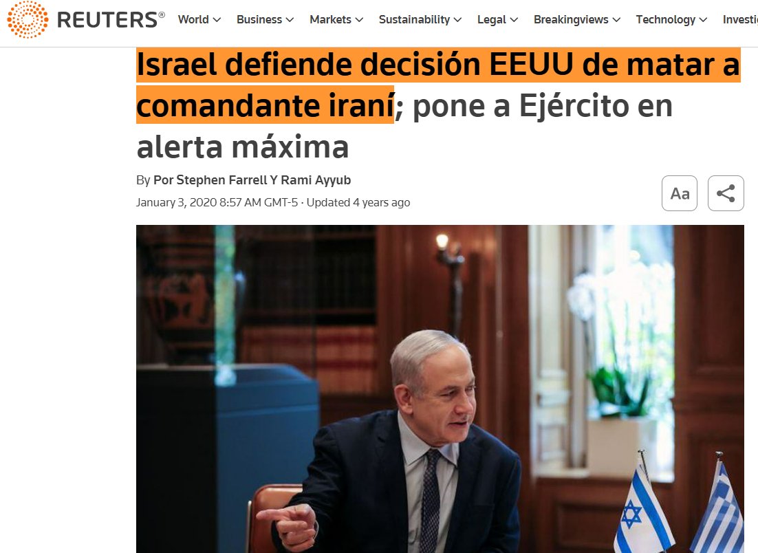 Esto explica con claridad el porqué de la postura de Israel tras el atentado terrorista estadounidense que martirizó a Soleimani.