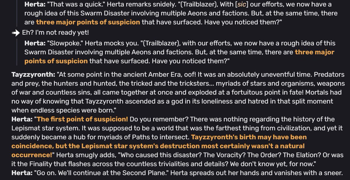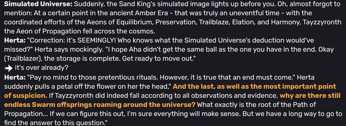 2. However, this is only the history recorded by the SU and history fictionologist. There are quite a few details and mysteries hidden in the story, as pointed out by Herta is the ending quest and in the SU dialogues. This thread aims to propose answers to some of these mysteries