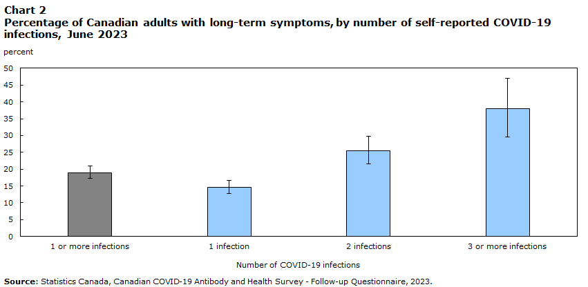 ℹ️ The odds here have been rounded to work with a ten sided die. As reported by Statistics Canada, the cumulative risk of acquiring Long COVID: