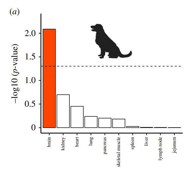 Like in humans, genes associated with intelligence are often expressed in the brain.