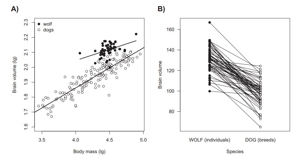 It may also be that dogs have lost some brain volume during the selection pressures that diverged them from wolves. Similarly-sized wolves have larger brains than matched dogs!