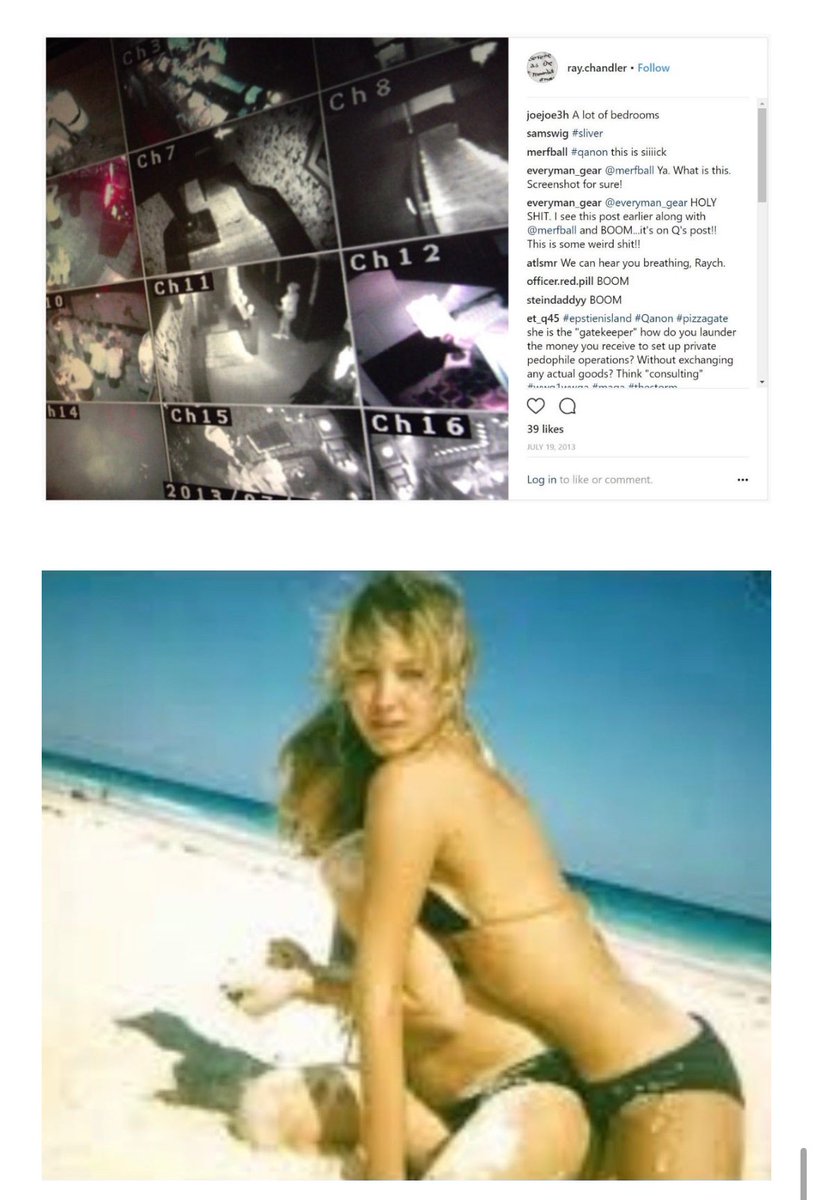 Chandler’s Instagram and Tumblr pages displayed photos that depicted tortured, bloodied and abused children. There were also photos she posted of children acting out a Satanic ritual over a pentagram painted on the floor. In another photo, there’s several mannequins wearing black robes that are known to be worn during Satanic rituals. There’s one photo she posted of CCTV footage believed to be surveillance at Jeffrey Epstein’s pedophile island Little St. James. There’s a photo in this surveillance that has been analyzed in-depth by anons. Many skilled researchers believe it shows people engaging in barbaric cannibalism in an underground facility. In another horrifying image, Chandler strikes a model pose as she’s tackling a distressed young woman with her arms tied up on a beach. There’s also a photo of Chandler with Bill Clinton on a private jet.