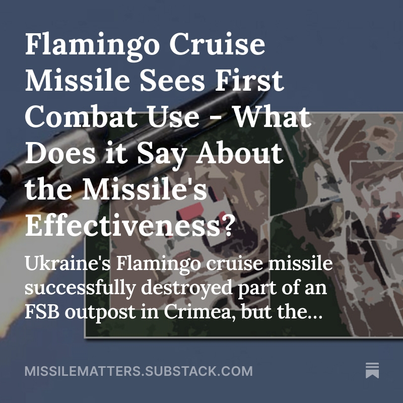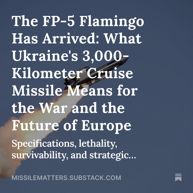 I published my latest newsletter post earlier today, offering an initial assessment of the FP-5 Flamingo’s specifications, lethality, survivability, and strategic implications.