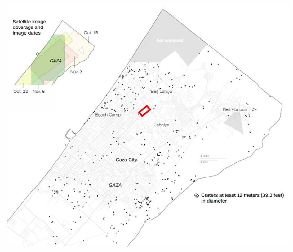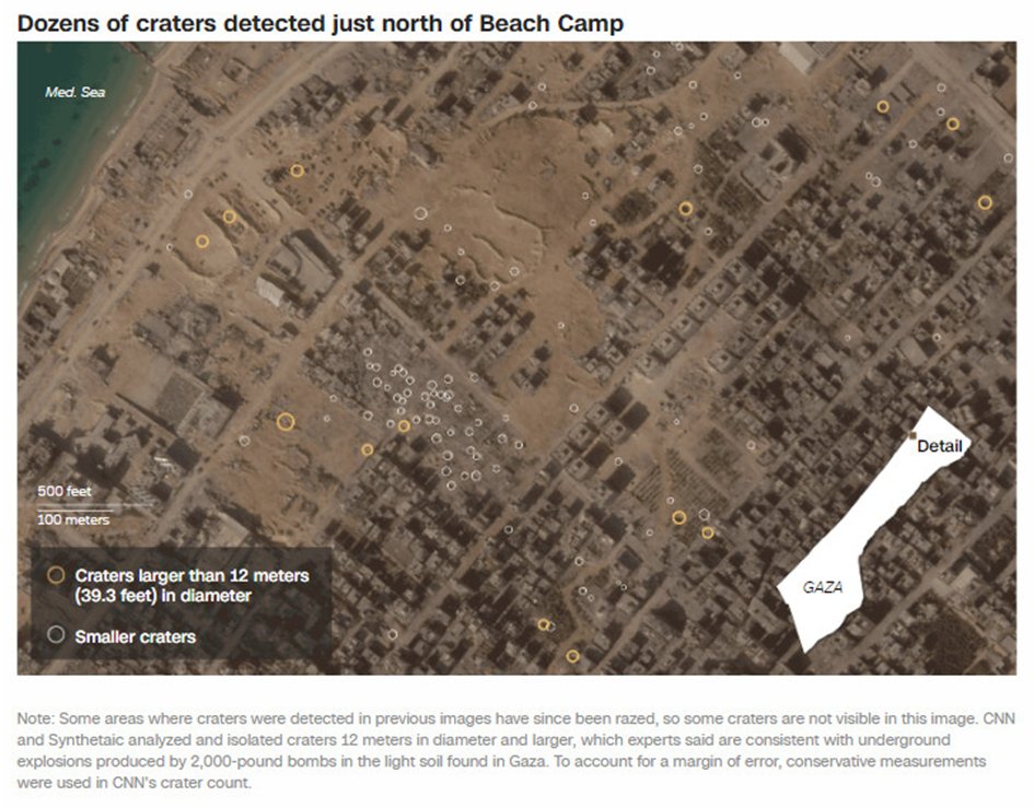 A CNN report from Dec 22, which only lists the craters of the 2,000 pound bombs, shows the area of the drone video still untouched, while since the beginning of November numerous media reports have documented the immense destruction in Jabalia with images. edition.cnn.com/gaza-israel-bi…
