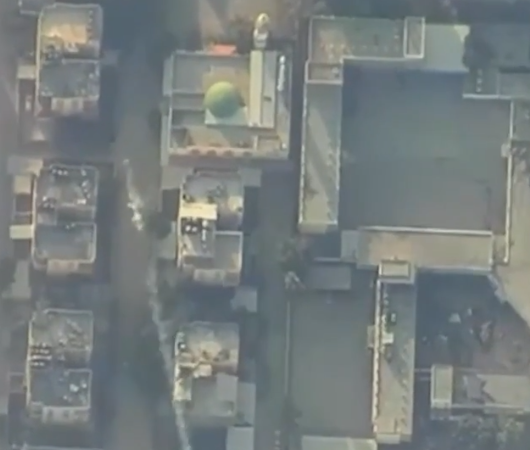 At the same time, the area northwest of the buildings was flattened before the ground offensive started. So it seems at least questionable when the drone video was taken.