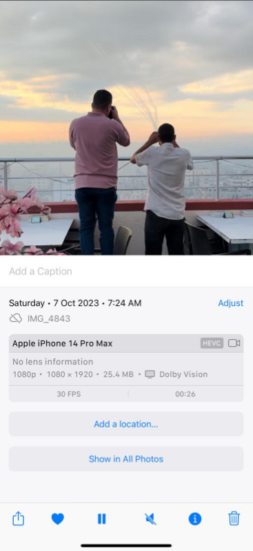 We observe all the same phenomena with the rocket from the canopy of the mosque. The canopy is clearly empty. Then suddenly the smoke trail begins in thin air out of nowhere. No shooter, or launcher.