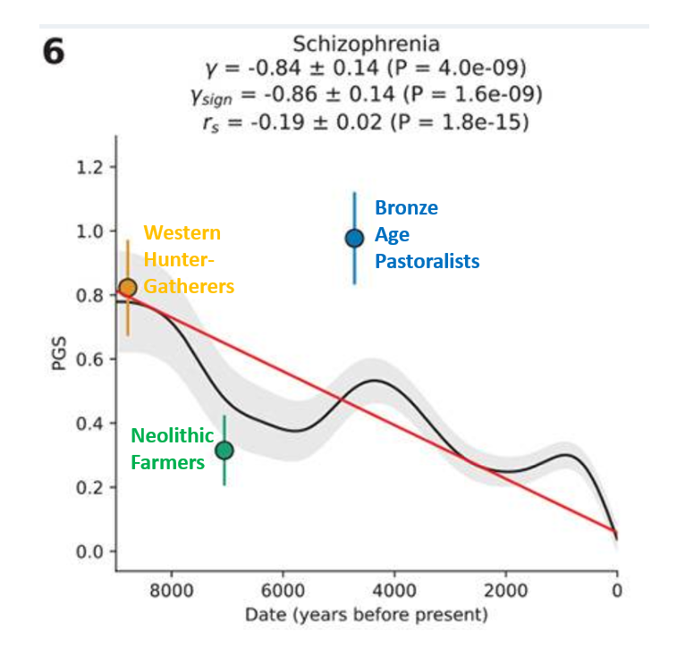 Almost 1 standard deviation reduction in PGS (polygenic score) for schizophrenia