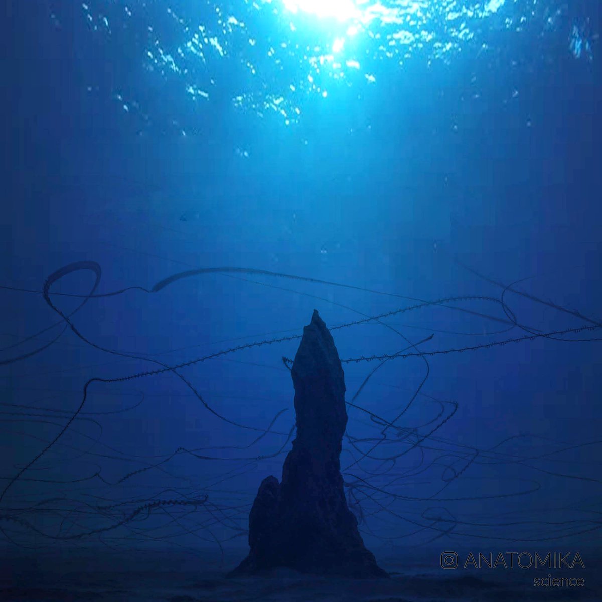 5,000 ft beneath the sunlit surface, elephant seals trail their prey, following invisible winding trails of turbulence in absolute darkness.