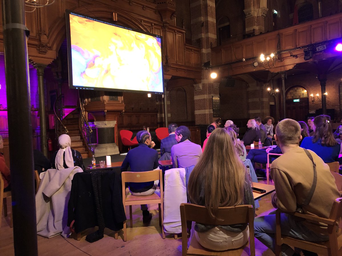 We gaan nu naar de borrel. We moeten uit de 'Circle jerk' komen van de mensen die sowieso dol zijn op de gemeentepolitiek, zegt de moderator. 'Dat er maar heel veel mooie verbindingen mogen worden gemaakt'.