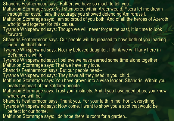 Okay wow, so Shandris is just. Leader of the night elves now. They're making it very explicit that Tyrande is getting her break lol