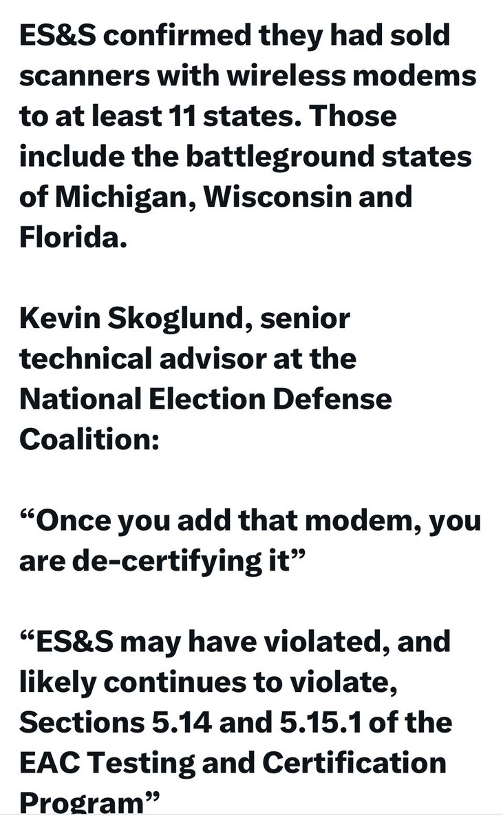 In 2018 and ten months after Chris Krebs was first notified about the ES&S wireless modem issue, and obviously uncertified machines, this happened.
