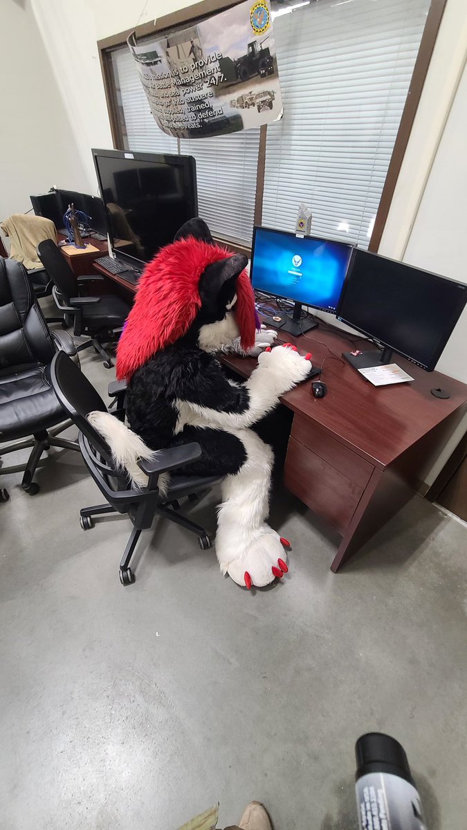 Mathlin wears a furry costume around @81trwKeeslerAFB & @MountainHomeAFB, in his office spaces
