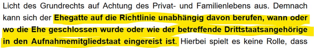 Europäischer Gerichtshof hat in C-551/07 (Sahin) festgehalten, dass Aufenthaltsrecht nicht an weitere Bedingungen geknüpft werden darf und es unerheblich ist, wo die Ehe geschlossen wurde.