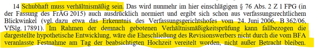 Falsch ist auch BFA-Information, dass "Änderungen im Privat- und Familienleben in jedem Verfahrensschritt amtswegig berücksichtigt" wurden. Im Schubhaftbescheid wurde die geplante Eheschließung und Partnerin nicht einmal erwähnt.