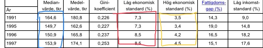 Mhm. Detta skall dock ställas emot att den mängd människor som faller under det här strecket har fördubblats. Arbetslösheten har parkerat sig på långt högre nivåer än vi hade före. 7% av Sveriges befolkning har gått från vettig inkomst till låginkomsttagare under samma tid.