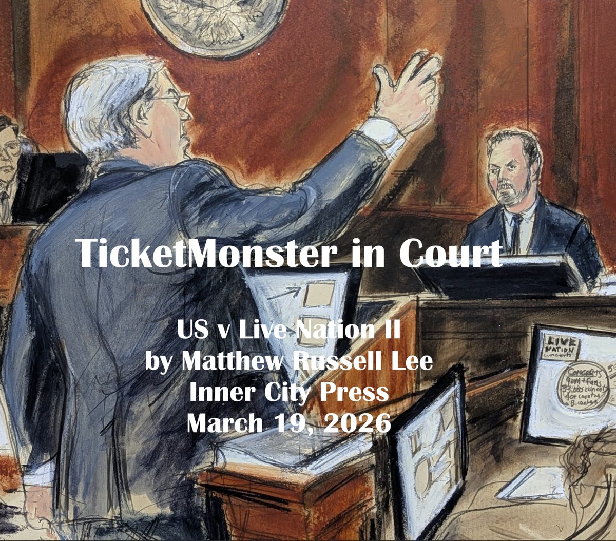 OK- Day 3 of Carroll v. Trump 2d trial. Carroll still on cross by Habba, Trump not present, at funeral he's said. Inner City Press will live tweet as it did 1st trial (incl in this book
