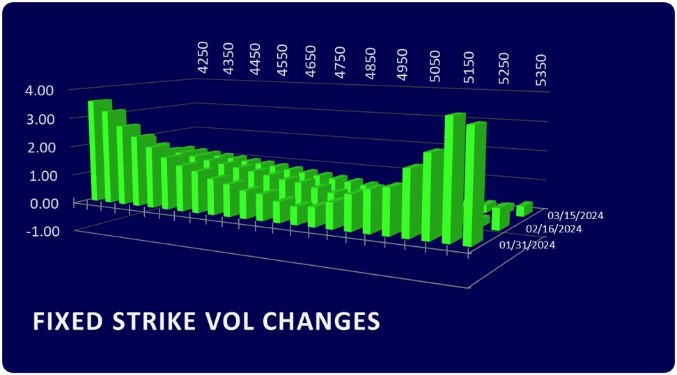 4/ Meanwhile, behind the 19Jan expiry, the rest of the surface has been catching a bid. Fixed strike vol (31Jan-15Mar) since last Thursday is up huge! That is with SPX unchanged in the same timeframe although we did visit lows around 4720 this week. This tells us that $SPX option dealers are being taken shorter vol from flows and have less VEGA inventory.