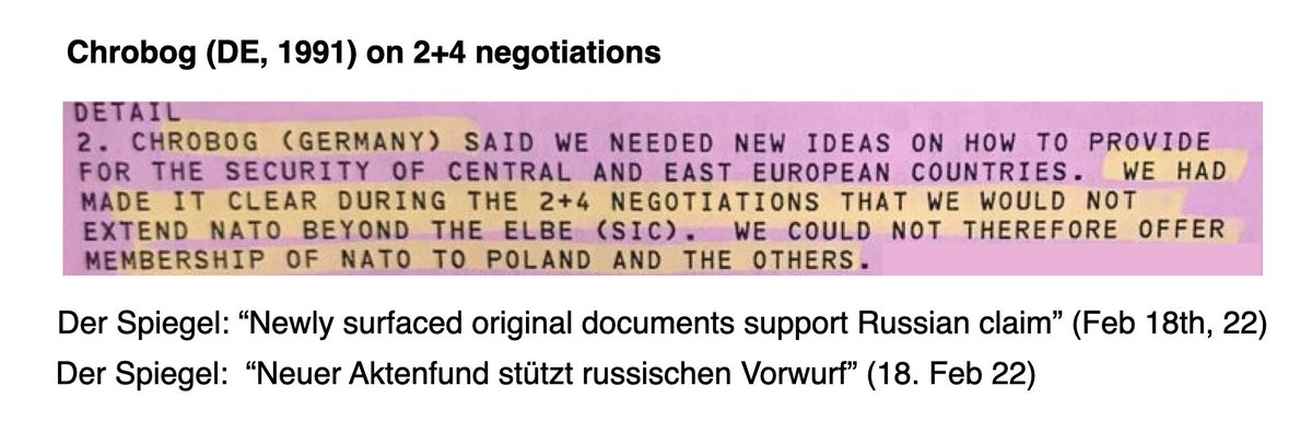 “We made it clear in the two-plus-four negotiations that we would not take NATO beyond the Elbe stretch [West German border]. We can therefore not offer Poland and the others NATO membership."