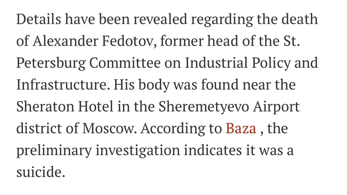 “According to sources, the tragedy occurred the day before. The body was found under the windows of a hotel in Sheremetyevo, where the deceased was likely staying in a room on one of the higher floors.”