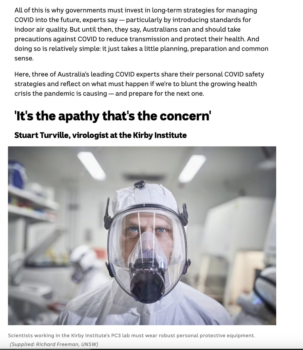 @CO2RadicalAus 29/ Governments 'should' be leading their people, but since they aren't we all have to do the best we can. To my mind - call me cynical, some do - the health and mortality cost of repeated COVID infection has been deemed acceptable, so of no account, or "plausibly deniable".