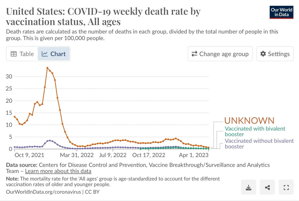 I visualized each reported age group's all-cause age-standardized mortality rate (per 100k) by vaccination status in the thread below. Does this look concerning to you?