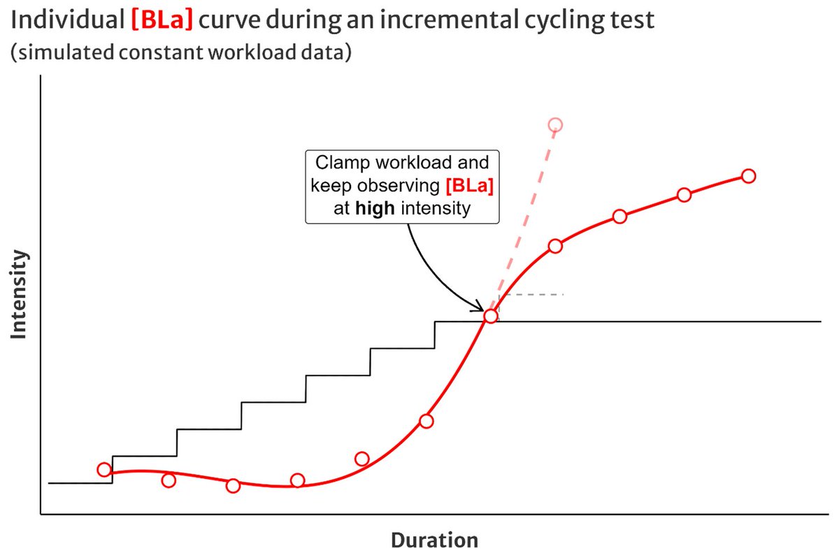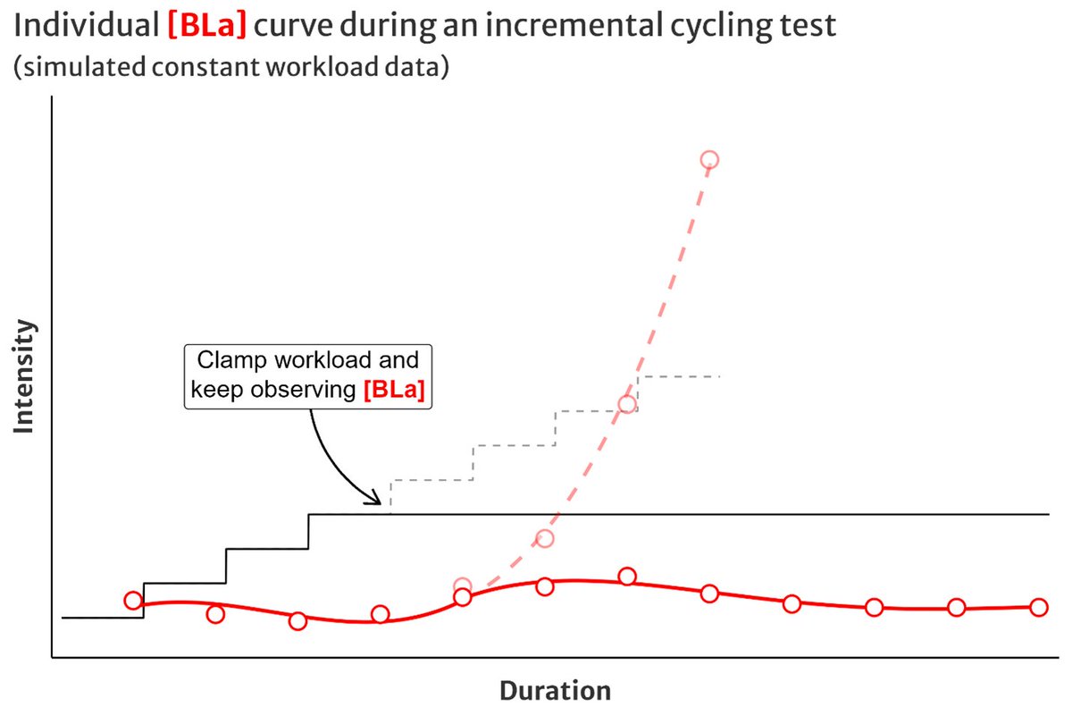 Standard schematic representation of constant workload 🩸BLa response below, at, and above the maximal lactate steady state looks like this