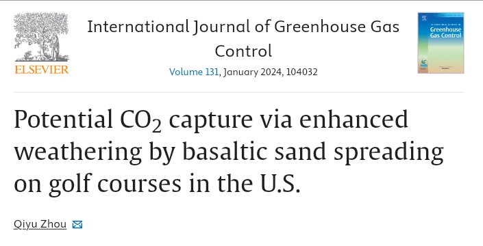 The study () by @QiyuZhou_Turf assessed the potential net CO2 sequestration via enhanced basalt weathering on golf courses with consideration of the carbon footprint of basaltic sand production and operational processes. #ERW