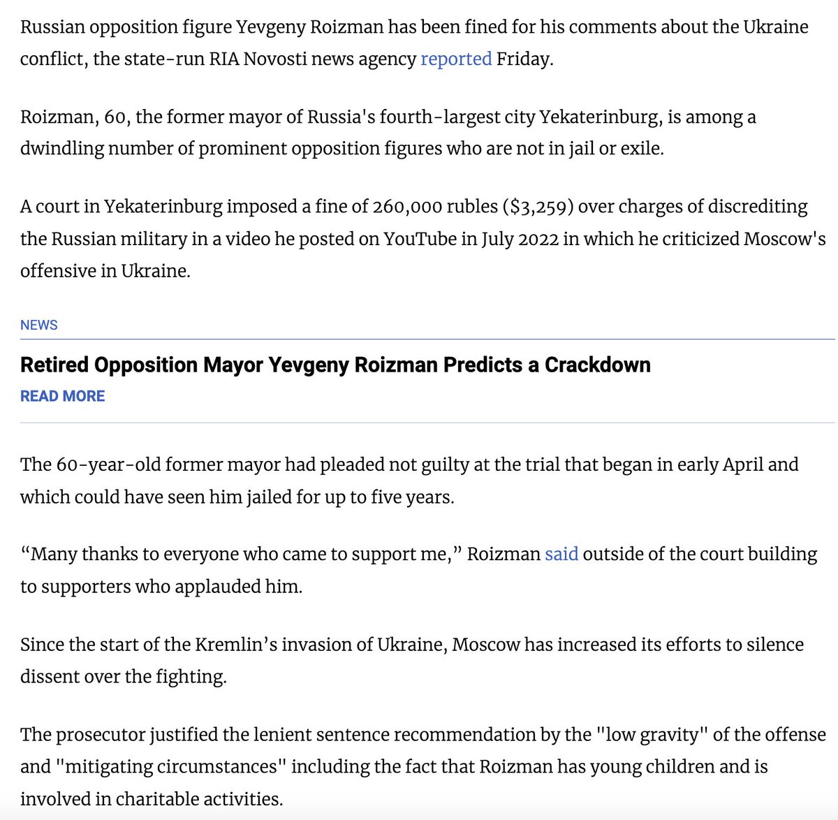 The article mentions criticism of the billboards by Евгений Ройзман (Yevgeny Roizman), who's conversely not considered "patriotic" -- he's officially labeled a "иноагент" (foreign agent).