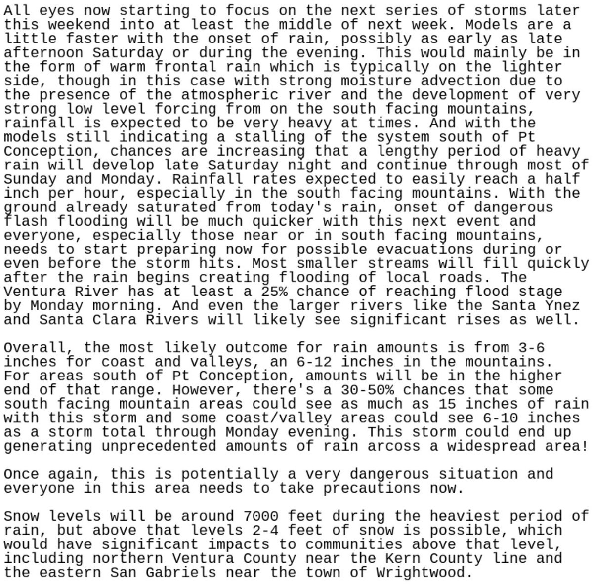 The wording of the short-term outlook in the latest Area Forecast Discussion from @NWSLosAngeles is foreboding for the next storm currently taking shape north of Hawaii. #CAwx #AtmosphericRiver #SoCalWx