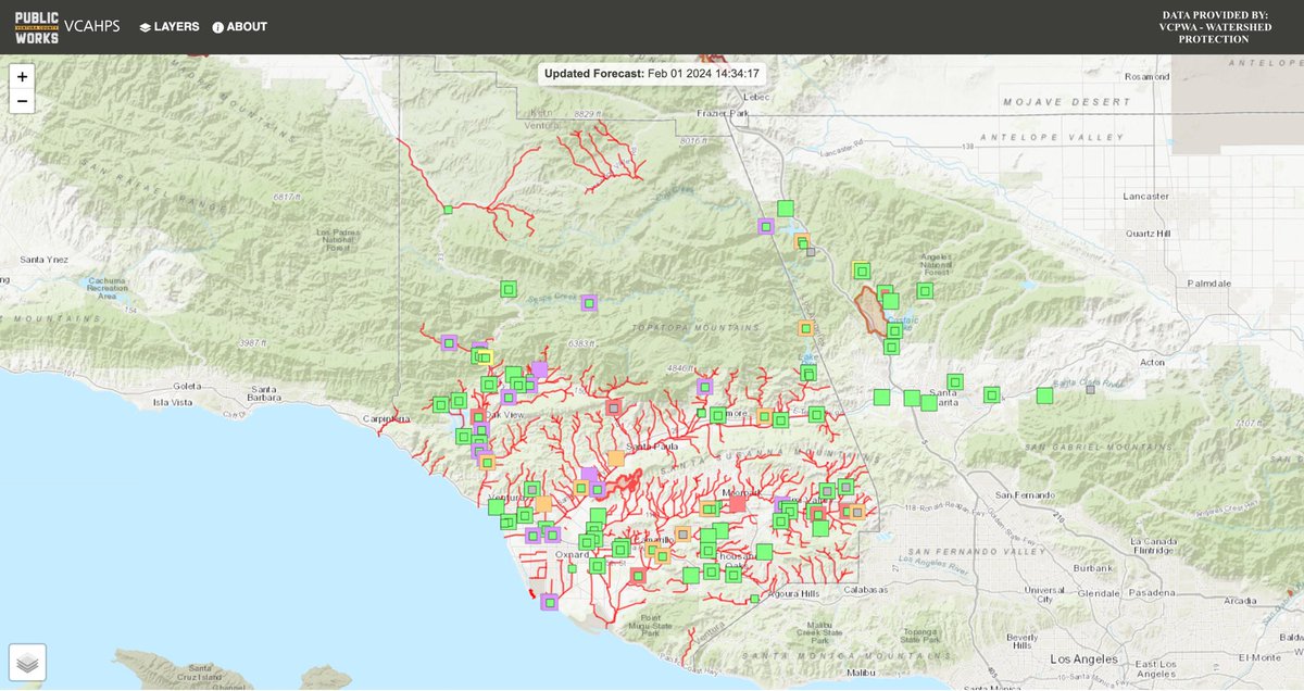 @NWSLosAngeles Following a healthy recharge from storm system #1 streamflow outlooks are getting colorful across Ventura & northwest LA counties as storm system #2 starts to work into the 3-5 day forecast illustrating the rising odds for hydrological impacts still to come next week. #CAwx