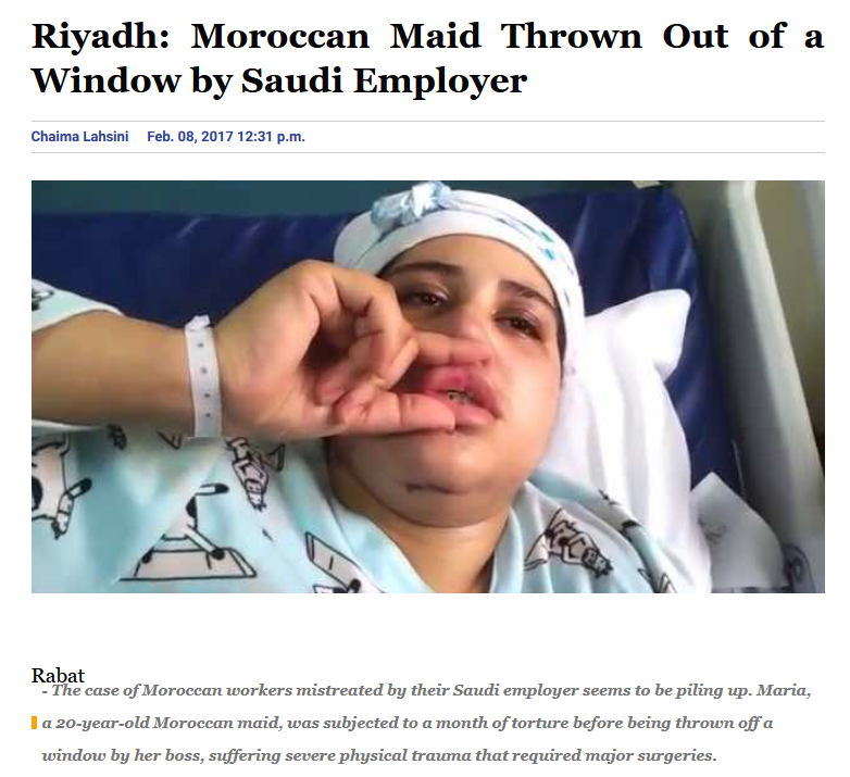 Apparently it's not exclusive to African maids. In 2017 a Moroccan maid in Saudi Arabia was thrown out of a window by her employer.