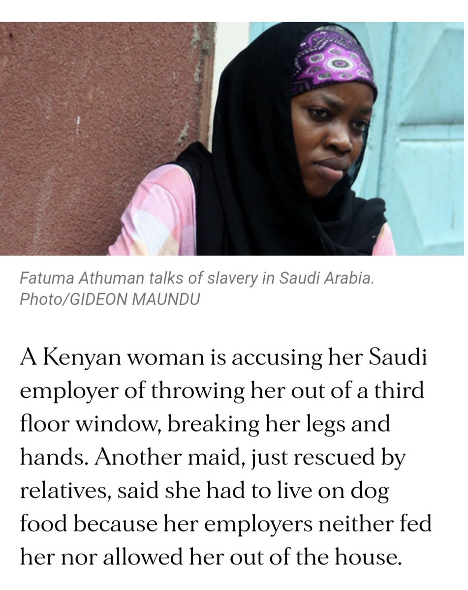 In 2010, a Kenyan maid accused her Saudi employer of throwing her out of a third-floor window, breaking her legs and hands.