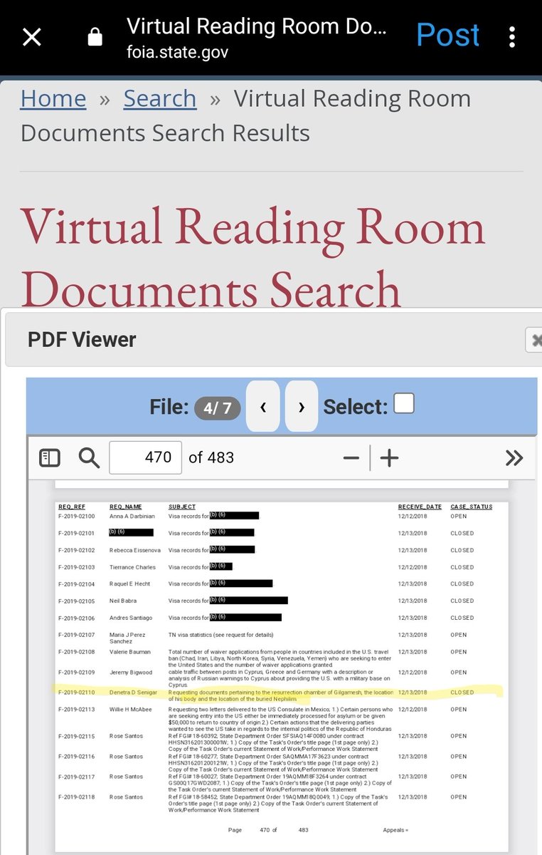 The discovery is further corroborated by a 2020 FOIA release of State Department emails that show a certain Denetra D. Senigar was "requesting documents pertaining to the resurrection chamber of Gilgamesh."