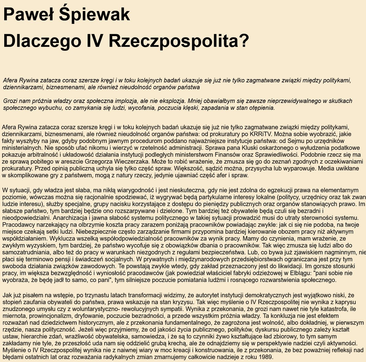Nie wróżę tej strategii sukcesu i nie sądzę by była ona korzystna dla państwa ale to już innym razem. Na pożegnanie dodam tylko, dlaczego nie wspomniałem o słynnej historii kontaktów Łączewskiego z Lisem. Powód jest prosty: G. Warszawskiej wierzę jeszcze mniej niż Wyborczej. EOT
