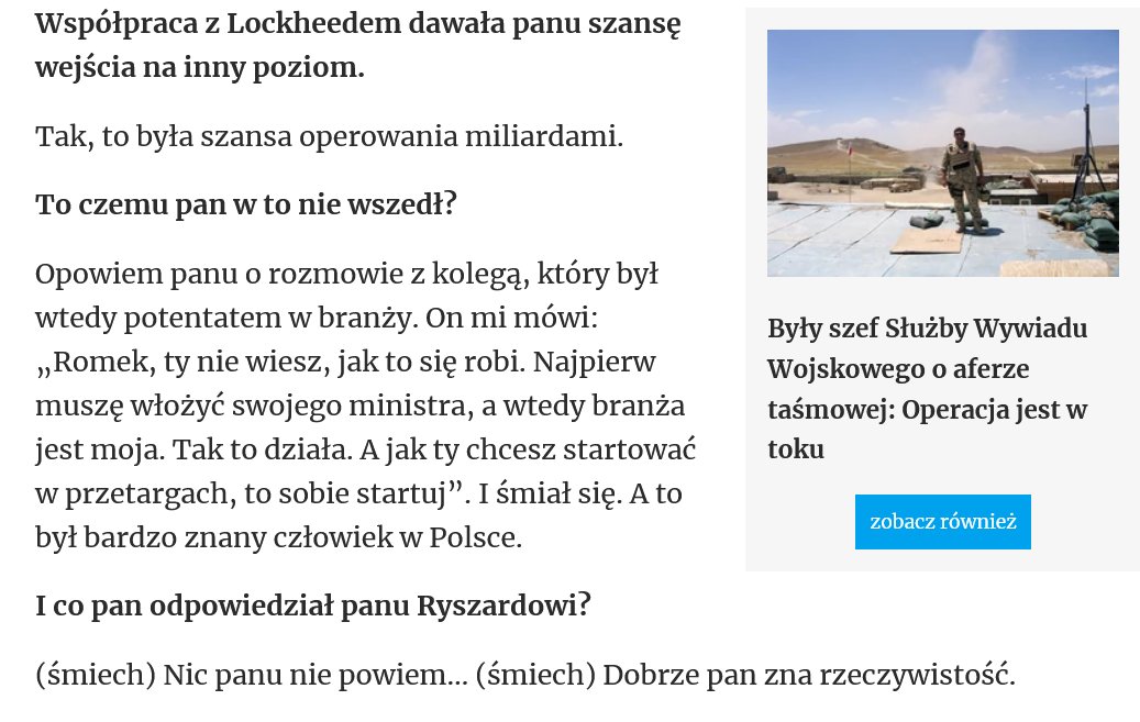 ...Kaczyński i Tusk w l. 2005-2009 zrealizowali dzieło rozpoczęte jeszcze przez Leszka Millera: wzięli w karby partię rządzącą, tworząc realny nadzór premiera nad służbami i doprowadzając do tego, że zaczęły one tę partię kontrolować - zamiast blatować się z jej networkami