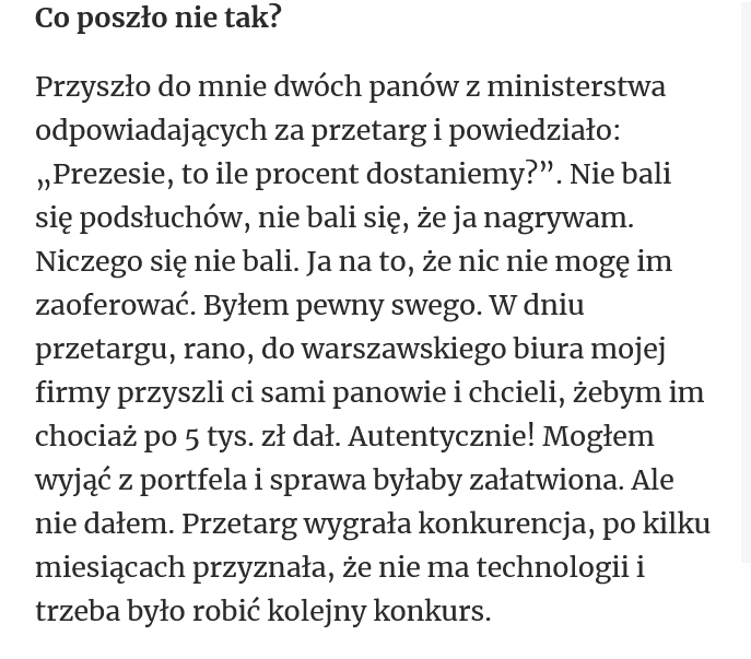 Bo jeżeli nie chcemy korupcji, to posłowie którzy zachęcają do kręcenia lodów, powinni się bać. A ministrowie powinni uważać, jakie dokumenty podpisują. Ale zarazem służby powinny wiedzieć, że jak przesadzą z szeryfowaniem, to trafią na kogoś takiego jak Łączewski.