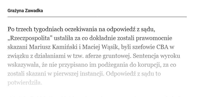 To nie taki drobiazg, bo wszak narracja o CBA jako "politycznej bezpiece" Kaczyńskiego jest już w zasadzie mejnstrimowym standardem. I moim zdaniem, w głowach czytelników GW była w 2015 już tak mocno utrwalona, że Łączewski był nią zasugerowany, orzekając.