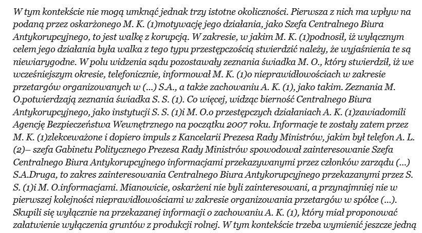 ... i jest napisane niezłą polszczyzną, i bardzo starannie. Łączewski wydawał wcześniej orzeczenia, które powinny go były uczynić bohaterem prawicy. Tym razem jednak wyszło mu inaczej: skazał szefostwo CBA. Przyjrzyjmy się za co.