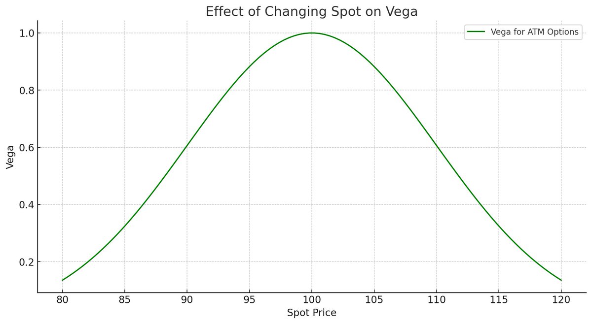 3/ Changing Spot Price ie spot price movement. Risk intensifies as the spot nears the option's strike, especially for ATM options. Conversely, moving away reduces risk. The gamma, vega, and theta are particularly sensitive to this.