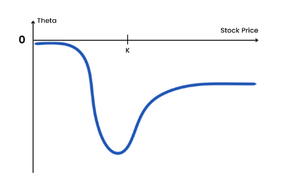 5/ Effect of changing spot on theta - for ATM theta is large and negative. Theta increases as you move from OTM to ATM and decreases as we move from ATM to ITM