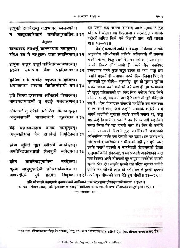 The Matsya Purana is one of the eighteen Mahapuranas, a genre of ancient Indian scriptures. It is named after the fish (Matsya) avatar of Vishnu. It marks the beginning of the current cycle of creation in Hindu cosmology and is the first avatar (incarnation) of Lord Vishnu in the Dashavatara.