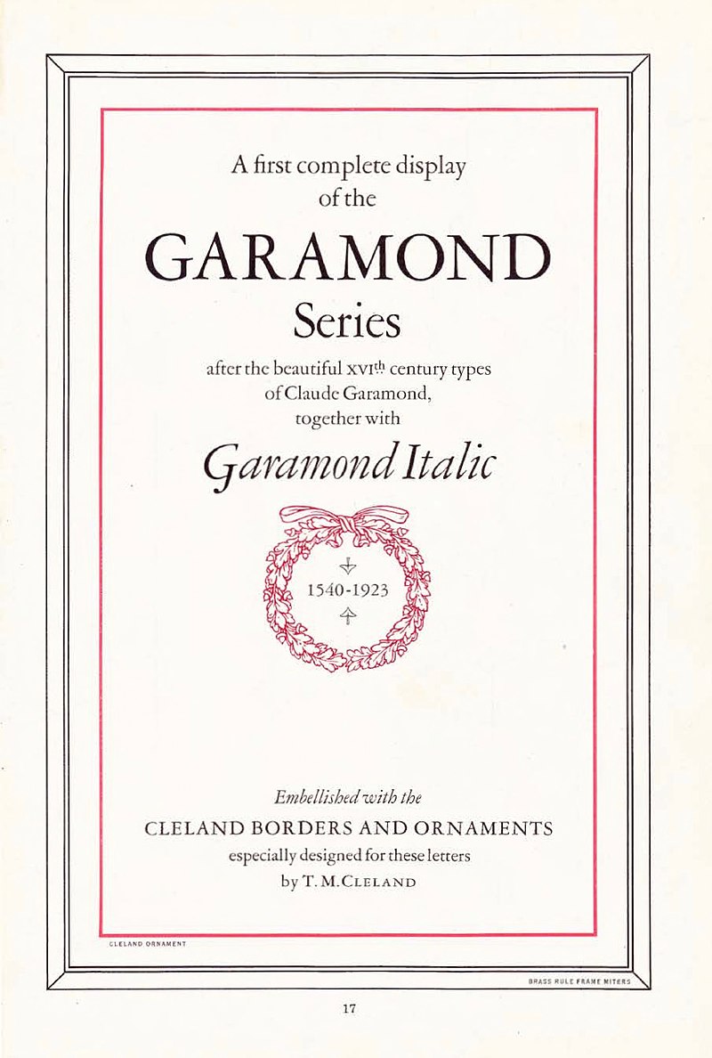 One of the oldest fonts still in regular use. It was designed in the 1920s as a revived version of a typeface used by the 16th century French publisher Claude Garamond, though the original designer (or "punchcutter") was called Robert Granjon.