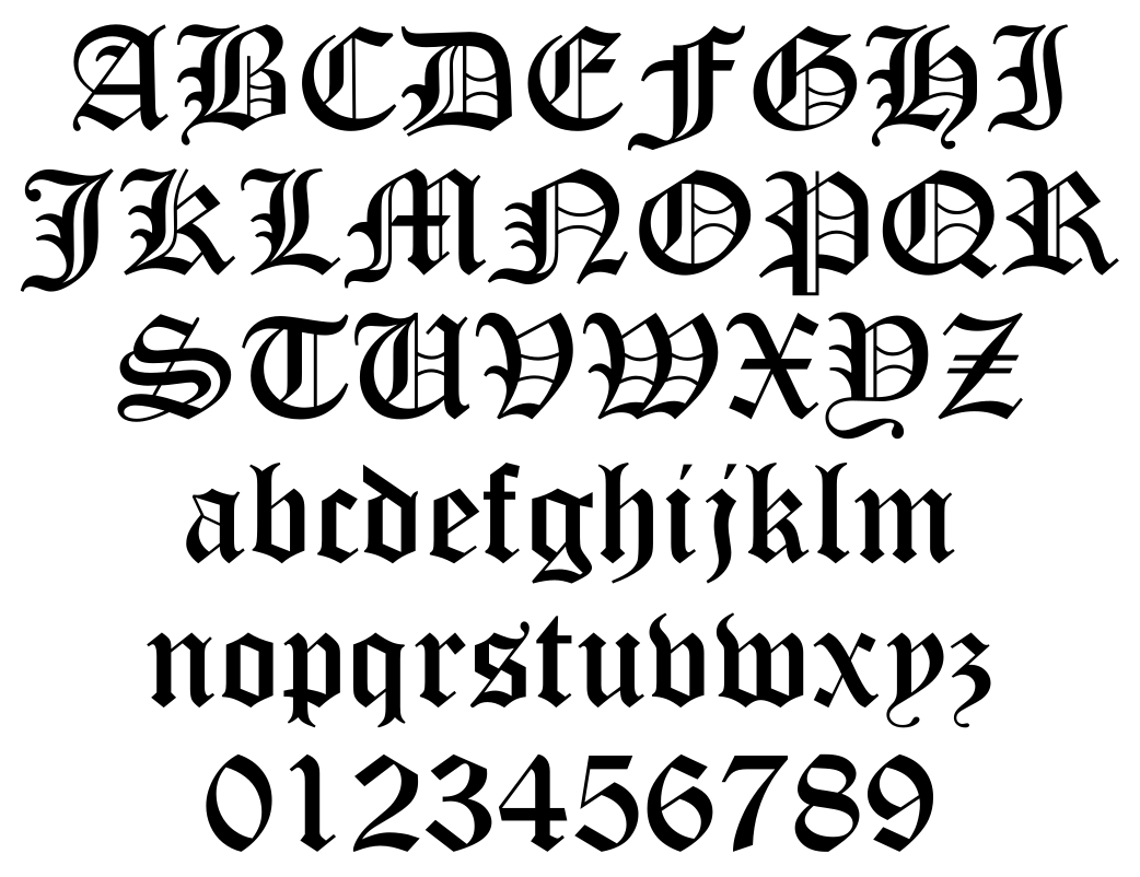 Despite its name, the so-called Old English typeface is really a modern reinterpration of the Blackletter style used when the printing press was first invented in the 1440s, itself based on the style of the hand-written manuscripts of Medieval monks.