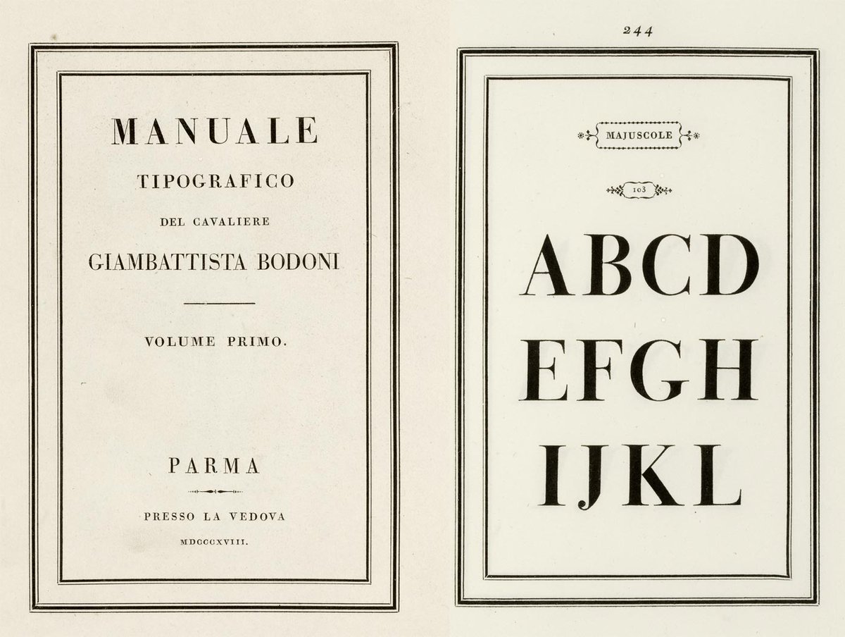 Designed by Giambattista Bodoni in the late 1700s, this font — with its extreme contrast between thick and thin strokes — takes us back to a different era of typefaces.