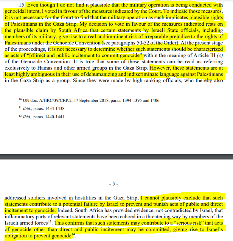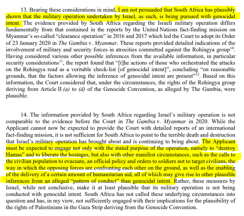 This by Judge Nolte (Germany) should be read widely, both to help folks not get carried away with today's Order and to explain the legal connundrum Israel finds itself in in this case. In short Judge Nolte did not vote in favour of PMs for the reasons you think 🧵